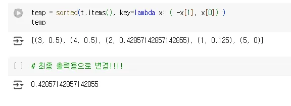 # 번외 [ 1/8, 3/7, 2/4, 1/2, 0] ===> enumerate(a) --> sort