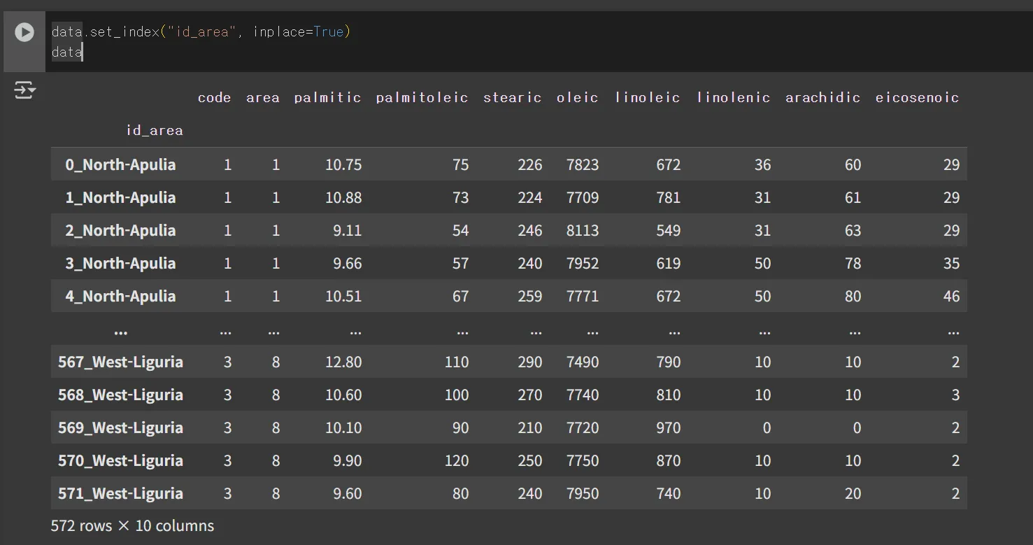 - id_area 컬럼의 값을 사람기준이 아니라 파이썬 기준 숫자로 변경!!