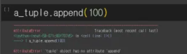 t = list(a_tuple) #자료형 바꾸고 t.append(1000) #어펜드 해라