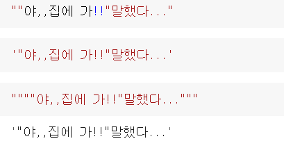 '“집에가”라고 말했다. ' '''“집에가”라고 말했다. ''' """“집에가”라고 말했다. """