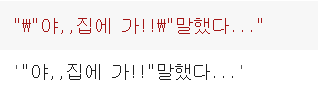 - 문장부호가 파이썬의 문자열 특수문자라서