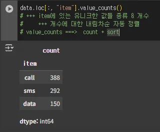 *** 자주 사용되는 기능 : 그 컬럼에 어떤 값이 몇 개가 있어요??