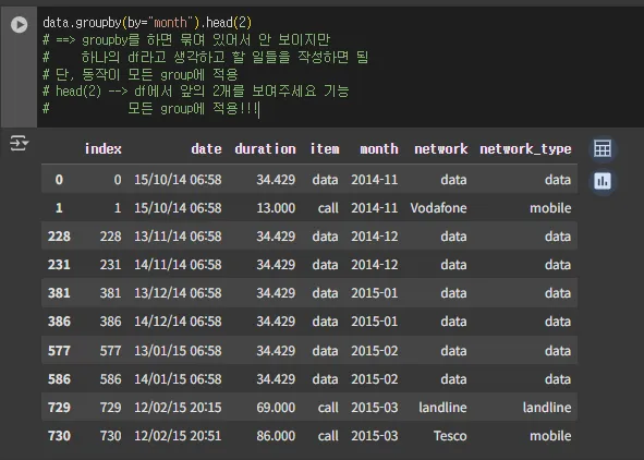 # ==> groupby를 하면 묶여 있어서 안 보이지만