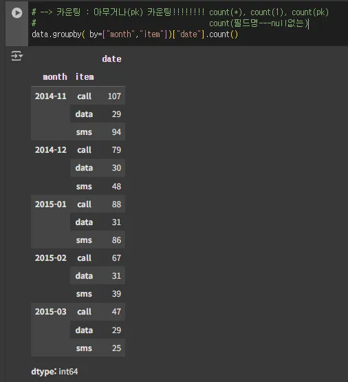 - 내가 데이터들을 묶어가면서 보겠다(sql) → groupby