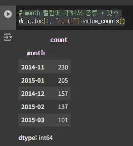 Index(['2014-11', '2015-01', '2014-12', '2015-02', '2015-03'], dtype='object', name='month')