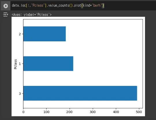- 왼쪽 : 객실별 승객수 → pandas plot