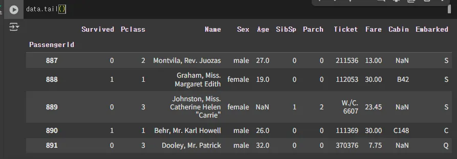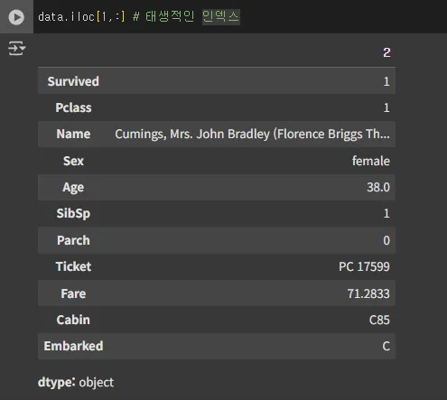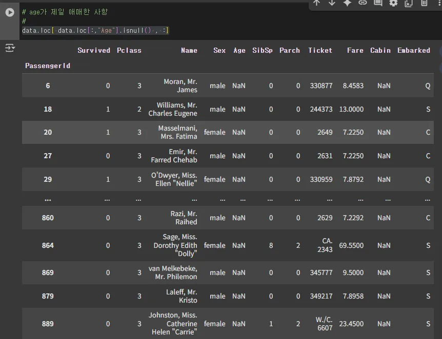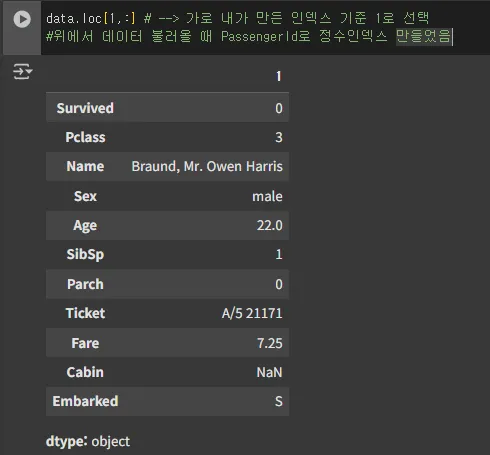 #위에서 데이터 불러올 때 PassengerId로 정수인덱스 만들었음