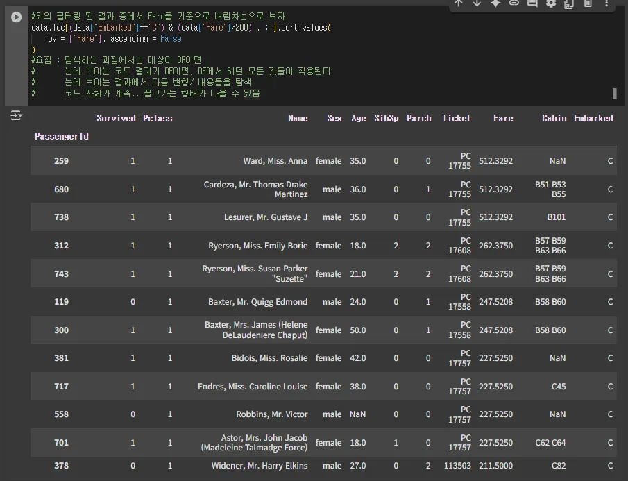 # 눈에 보이는 코드 결과가 DF이면, DF에서 하던 모든 것들이 적용된다