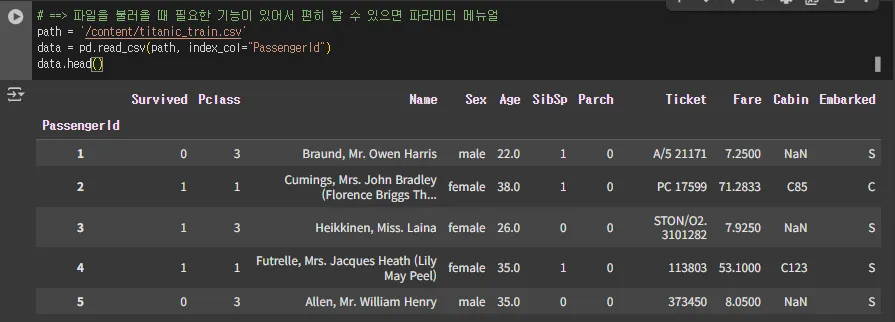 # ==> 파일을 불러올 때 필요한 기능이 있어서 편히 할 수 있으면 파라미터 메뉴얼
