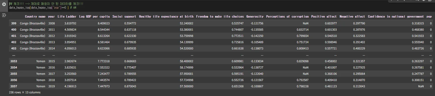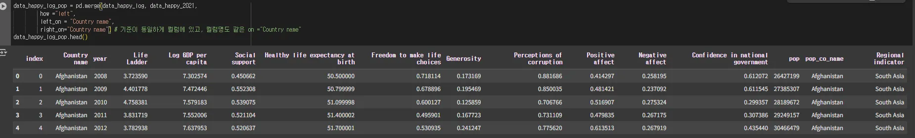# data_happy_log를 기준으로,,,월드뱅크 연도별 나라의 인구 데이터를 추가!!!!