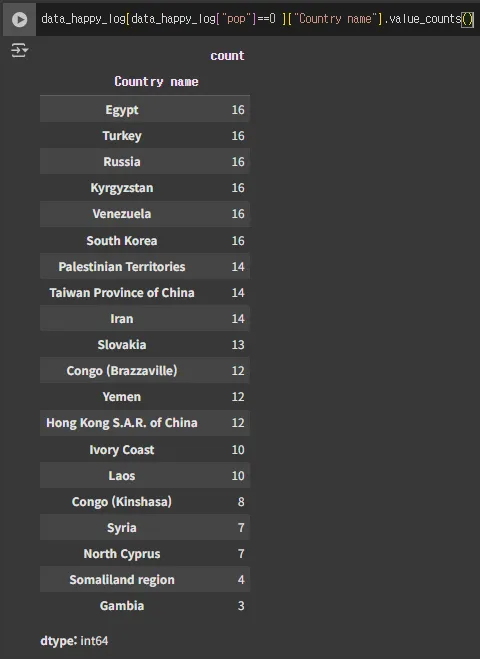 data_happy_log[data_happy_log["pop"]==0 ]["Country name"].value_counts()